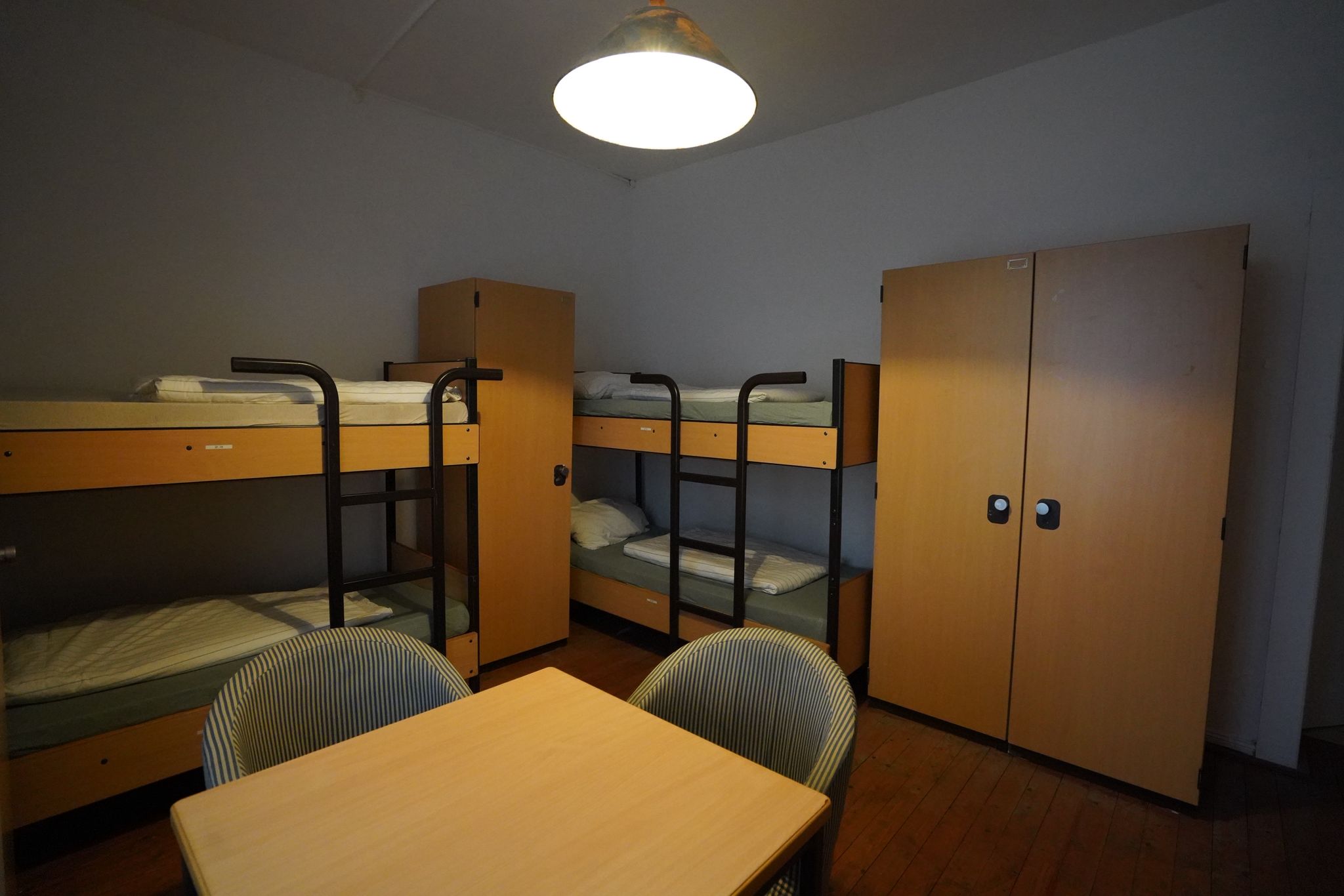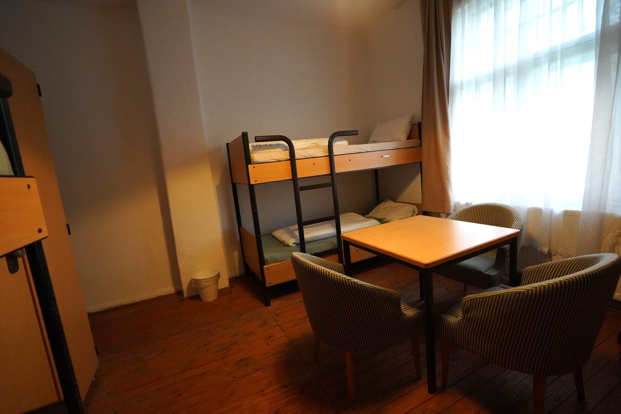 Zimmer mit 3 Betten. Gemeinschaftsbäder auf den Fluren.